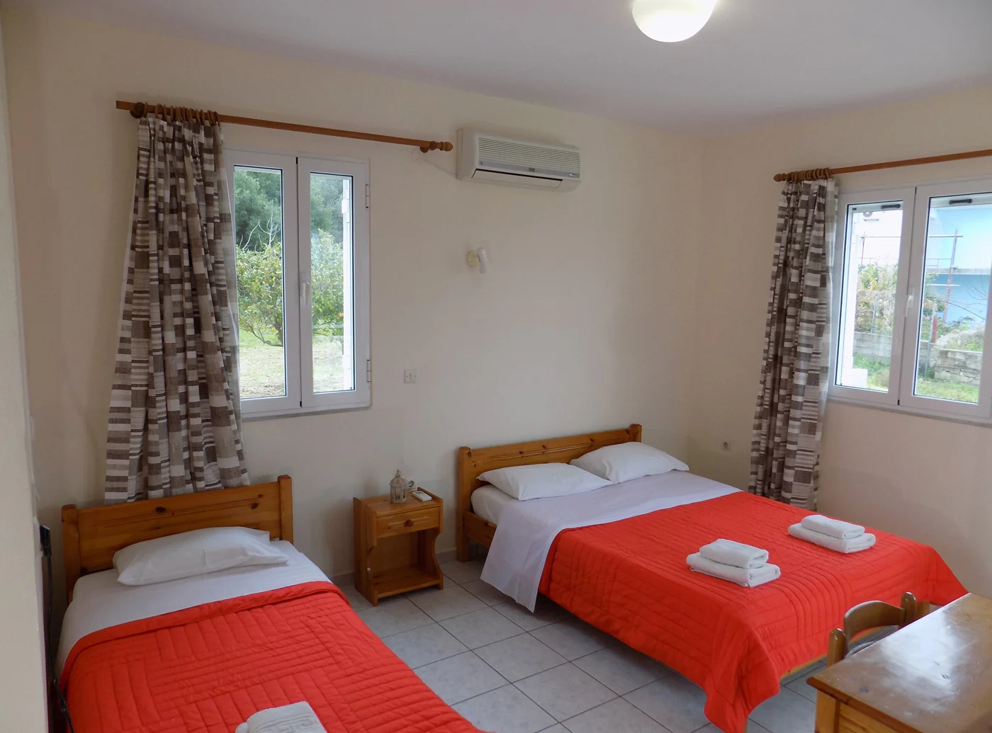 hot plates, fridge, kitchenware, electric kettle, dining table, bathroom with shower, hairdryer, air conditioning, free WiFi, TV, satellite channels, dressing table, iron, clothes rack, furnished balcony, side sea view